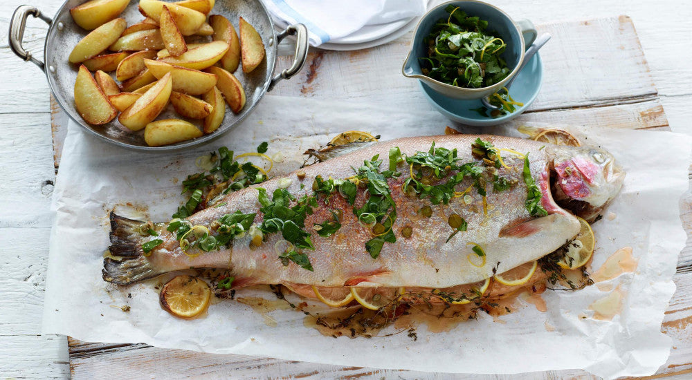 Whole Baked Ocean Trout with Kitchen Garden Salsa Verde